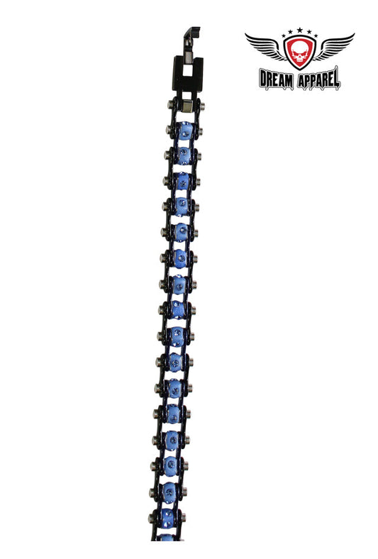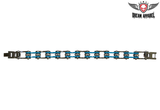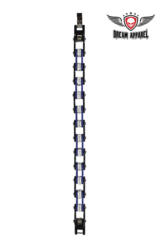 Chrome and Blue Motorcycle Chain Bracelet with Gemstones