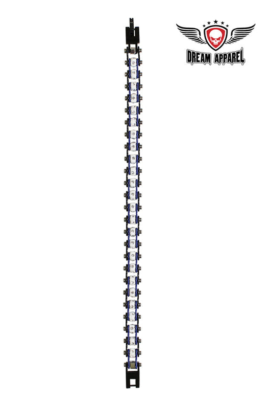 Black Chrome and Blue Squared Motorcycle Bracelet With Clear Gemstones