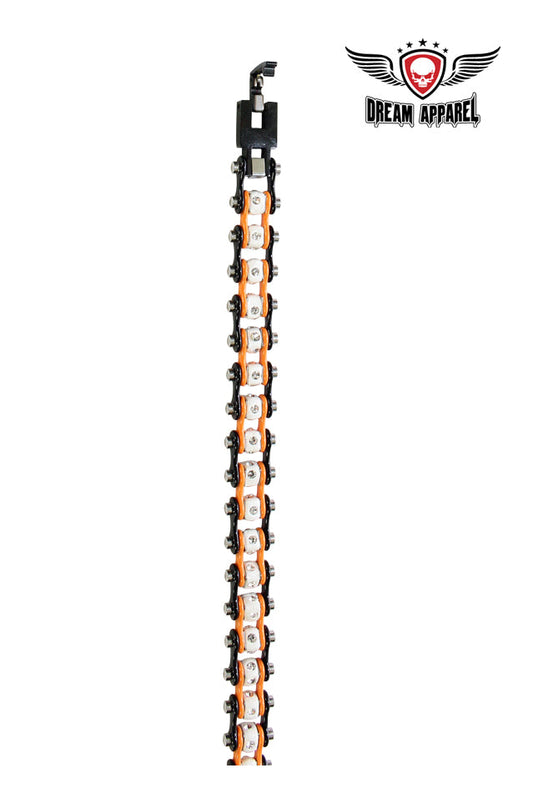 Black And Orange Squared Motorcycle Bracelet W/ Clear Gemstones