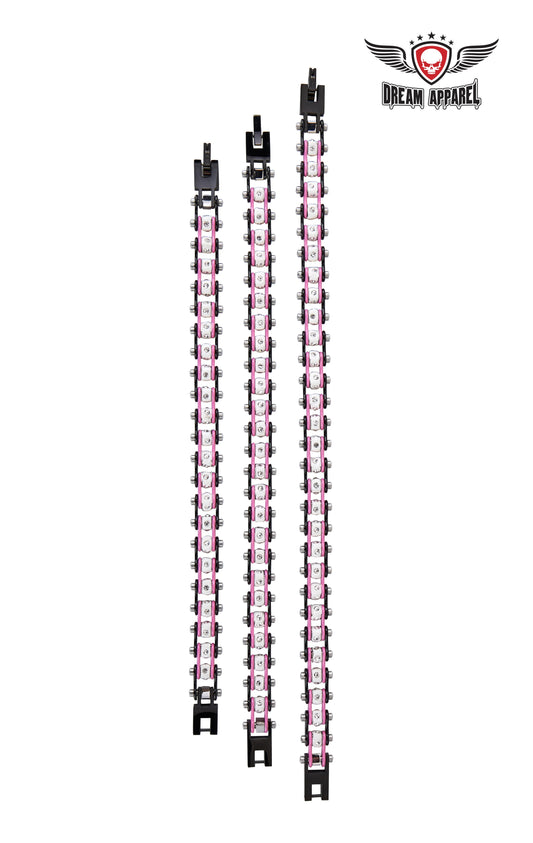 Black and Pink Motorcycle Chain Bracelet with Gemstones