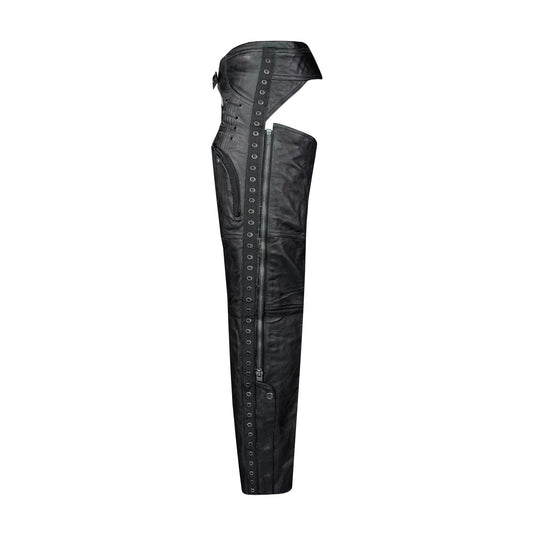 Braided Leather Chaps With Gathering In Inner Thighs