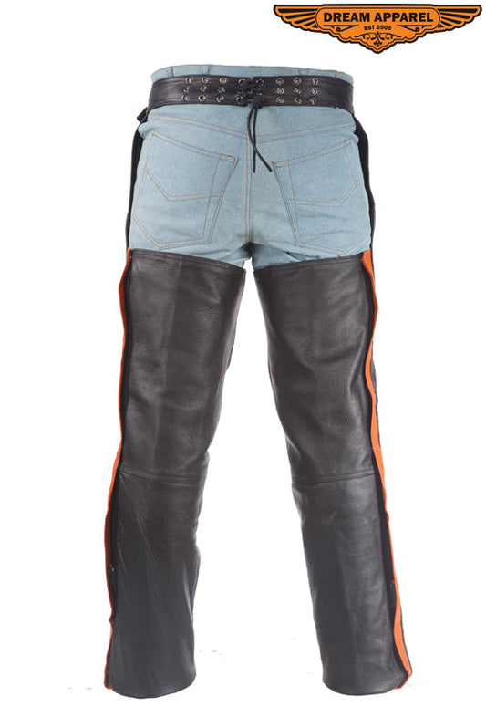 Black Leather Chaps With Orange Straps