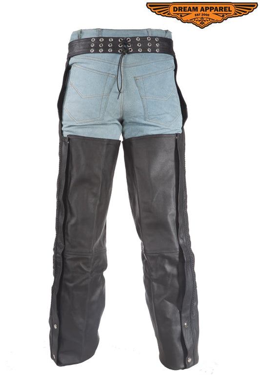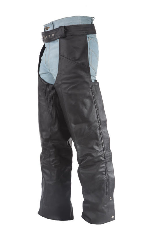 Braided Split Leather Chaps W/ Mesh Lining - Black