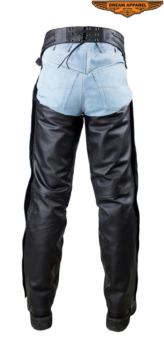 Dream Apparel Plain Black Split Leather Chaps With Zipout liner