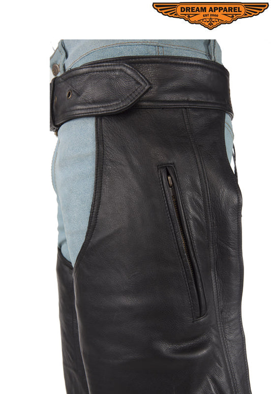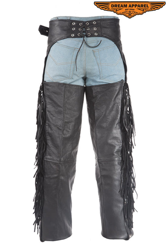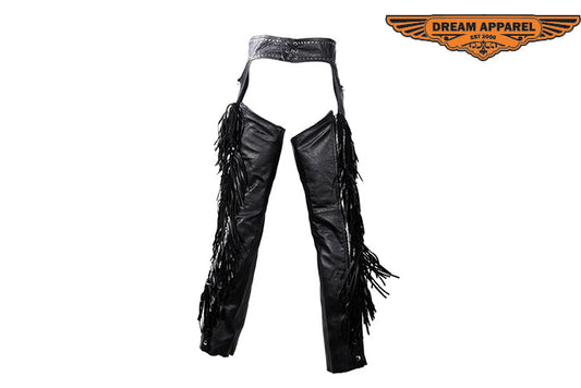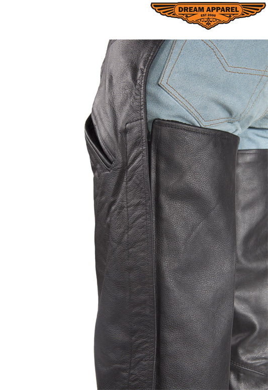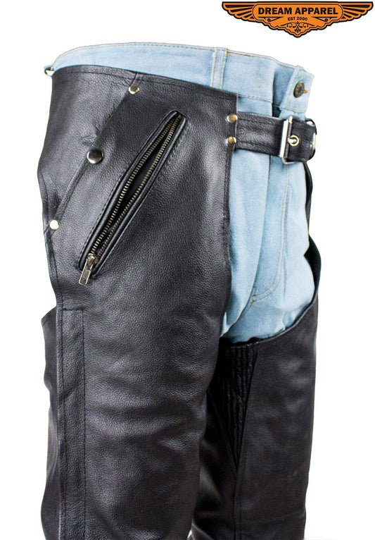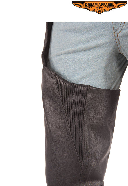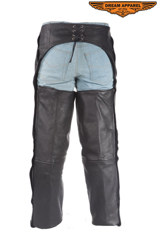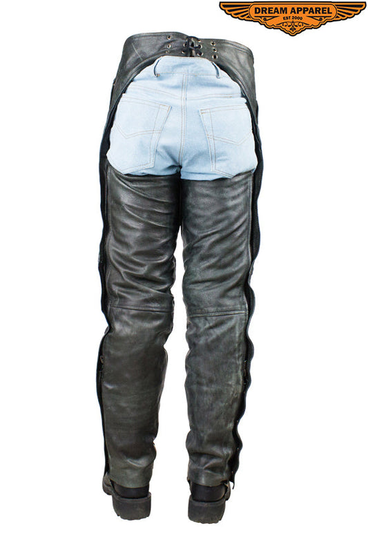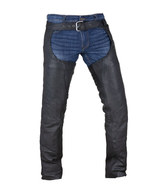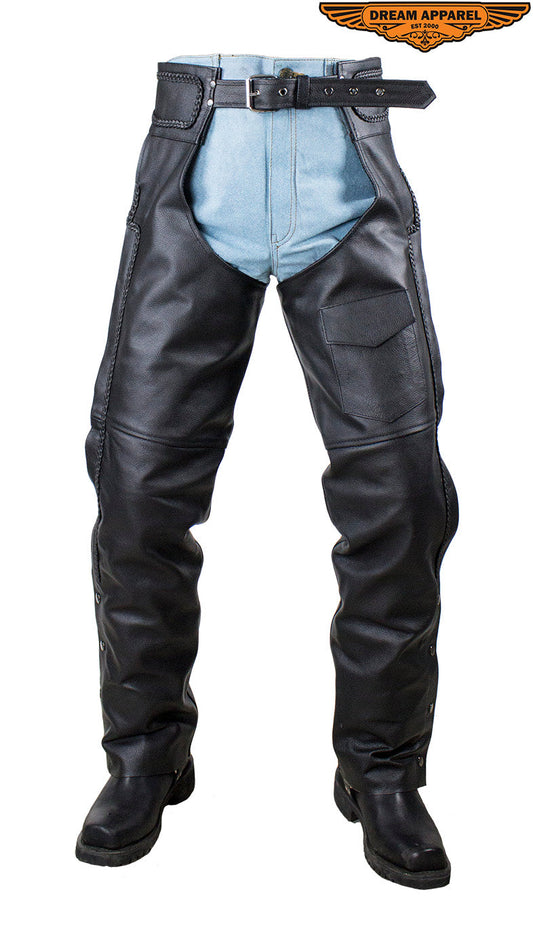 Braided Naked Cowhide Leather Chaps W/ Mesh & Zipout Lining - Black