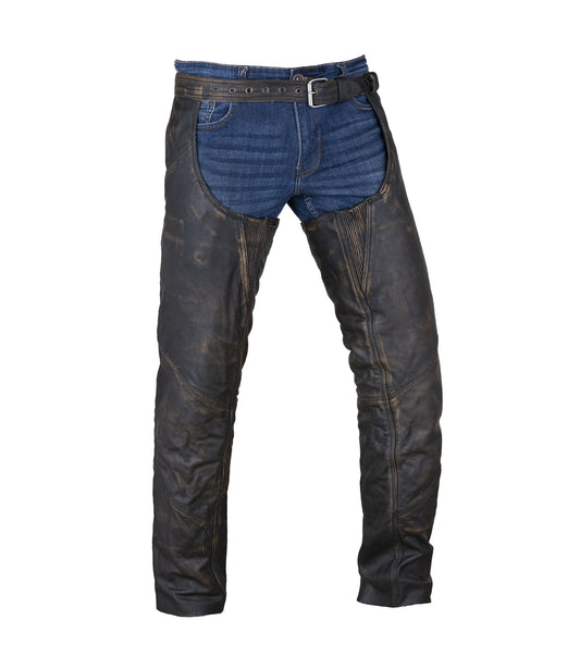 Distressed Brown Leather Motorcycle Chaps with Leather Belt