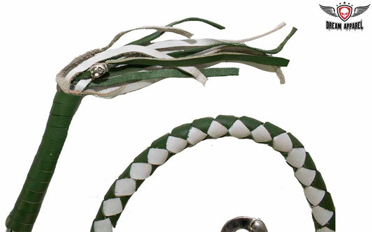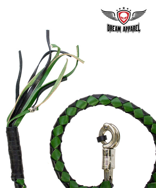 42" X 2" Hand-braided Naked Leather Get Back Whip - Black/Green