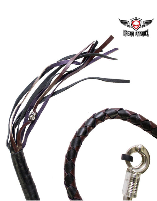 42" Inch Long x 1" Inch Thick Naked Leather Hand-Braided Get back Whip - Black/Dark Brown