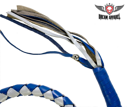 Blue And Silver Hand-Braided Leather Get back Whips - 2" Thick/42" Length
