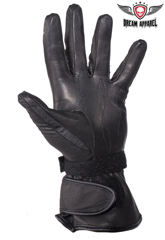 Womens Pink Full Finger Leather Gauntlet Gloves
