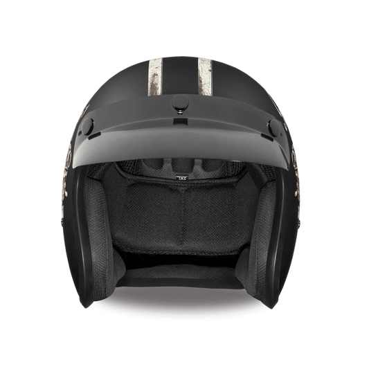 D6-G Daytona Helmets D6-G ‘Skull Cap’ with Skull and Guns Half Face Helmet Black
