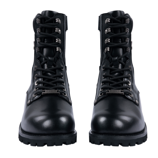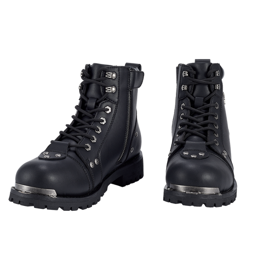 Dream Apparel Men's Motorcycle Riding Boots Waterproof Black Faux Leather Side Zipper Low Heel