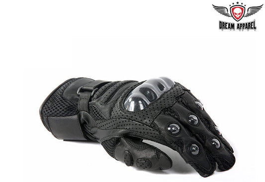 Men's Leather & Mesh Motorcycle Racing Gloves