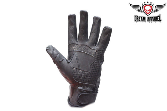 Dream Apparel Men's Black Genuine Leather Racing Gloves