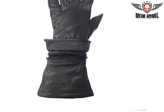 Mens Leather Gauntlet Gloves With Zip Off Cuffs