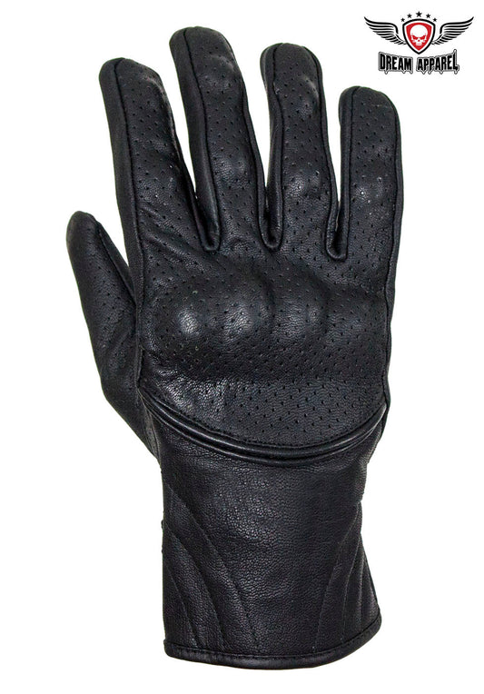 Men's Perforated Brown Leather Motorcycle Gloves for Riding with High Strength Knuckle Protection