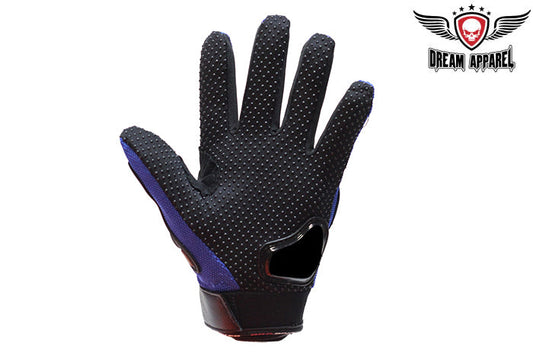 Mens Motorcycle Blue Fingerless Mesh Racing Gloves