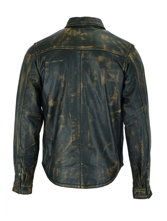 Mens Distressed Brown Leather Motorcycle Shirt with Concealed Carry