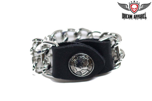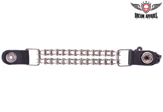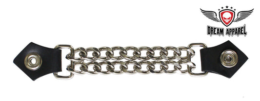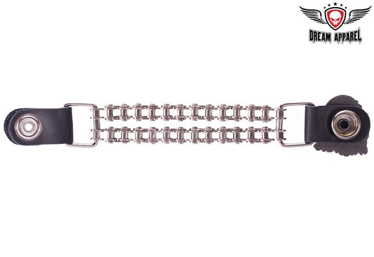 Leather Vest Extender W/ Chrome Chain - Shotgun Shell Lettering Graphic