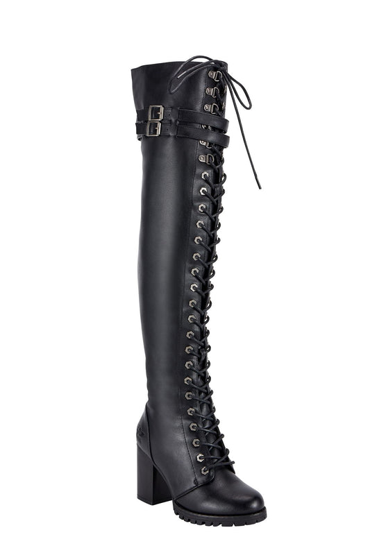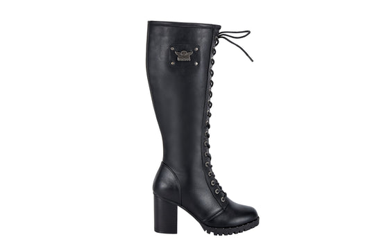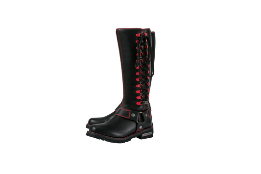 Dream Apparel Women Biker Black Long Boots with Red Laces