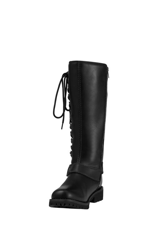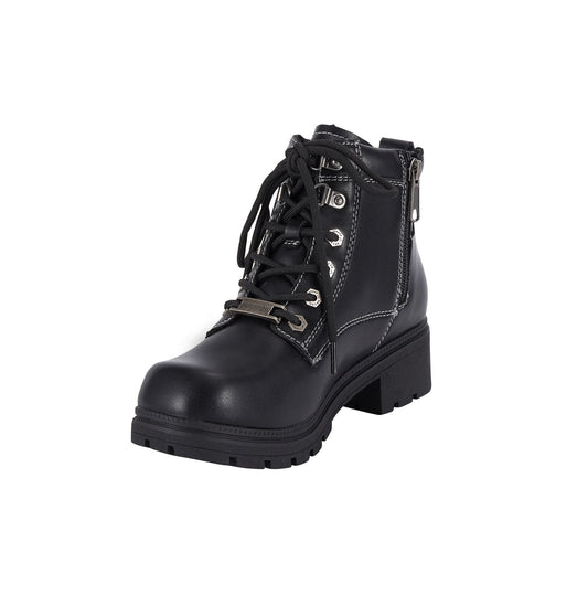 Dream Apparel Women's Lace Up Motorcycle Riding Boots YKK Zipper Black Faux Leather Ankle Biker Boot
