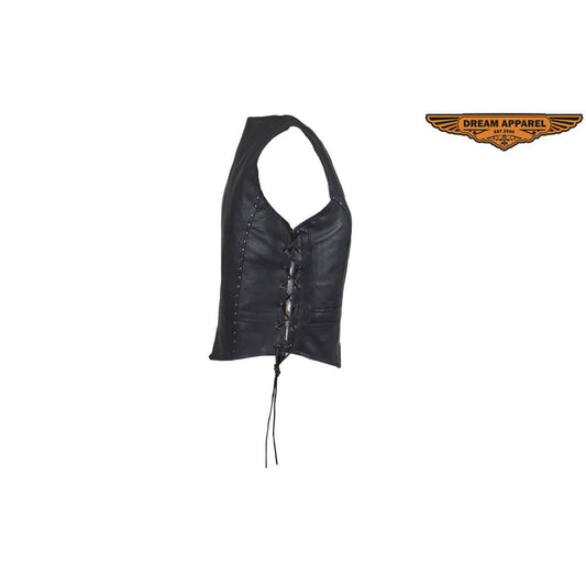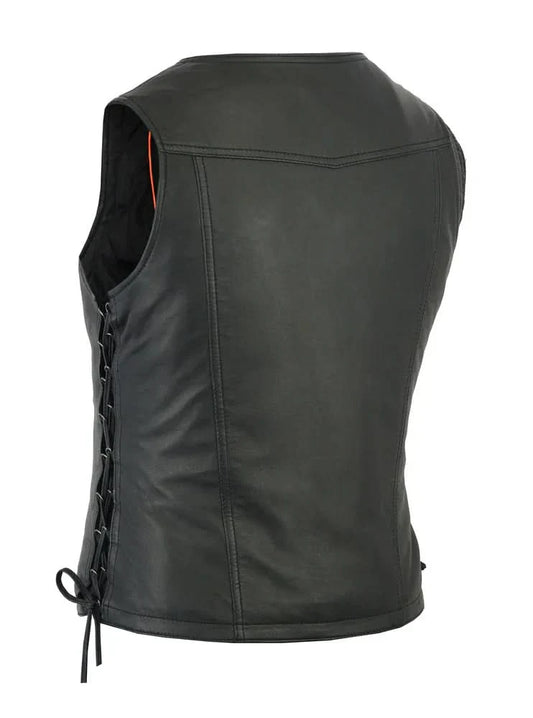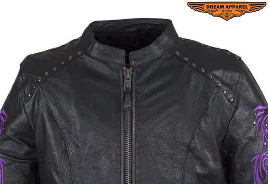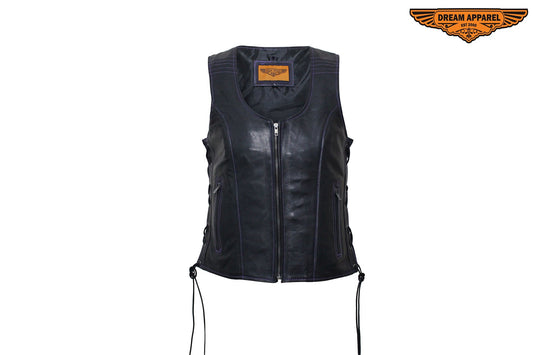 Dream Apparel Women's Naked Black and Purple Motorcycle Leather vest