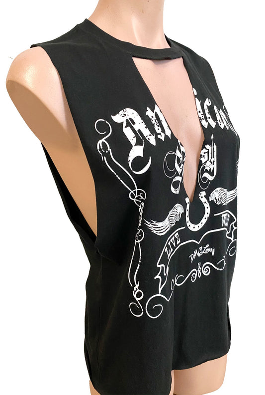 Outlaw Skull Graphic Motorcycle Sexy Biker Cowgirl Festival Slashed Tank Top