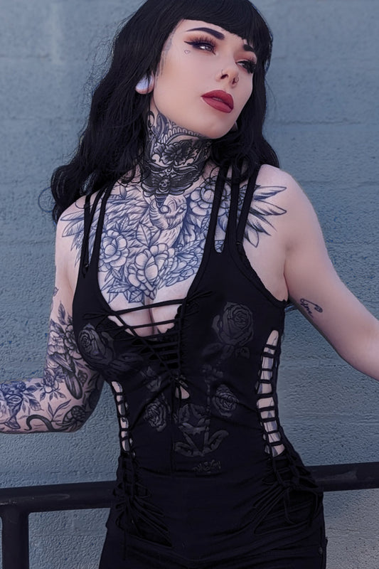Blackout Rose Cutout Y'Allternative Gothic Cowgirl Mini Dress