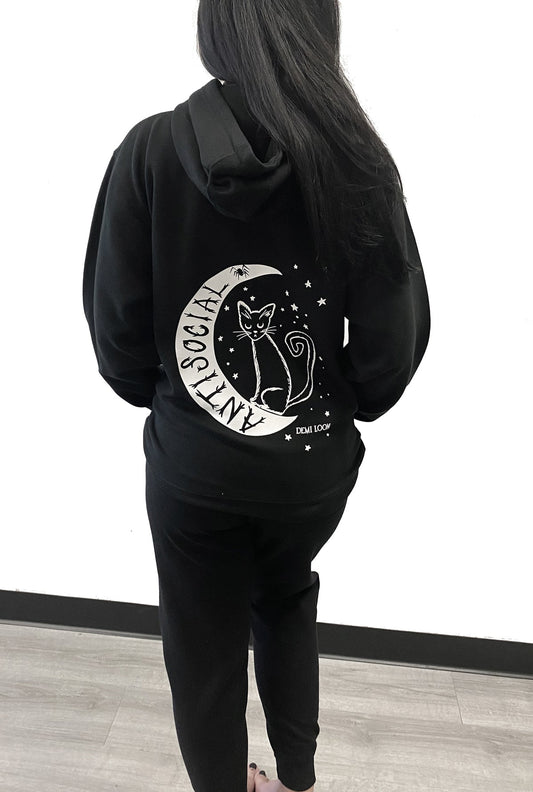 Antisocial Cat Witch Moon "Boyfriend Fit" Zipper Hoodie