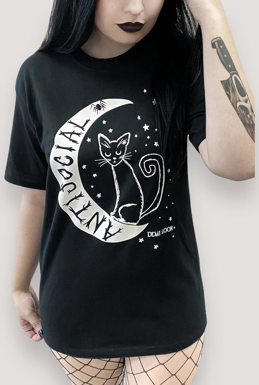 AntiSocial Cat Witch Moon Boyfriend SS Tee- Black