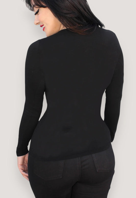 Black Out Gothic Rose LS Slash Tee-Black