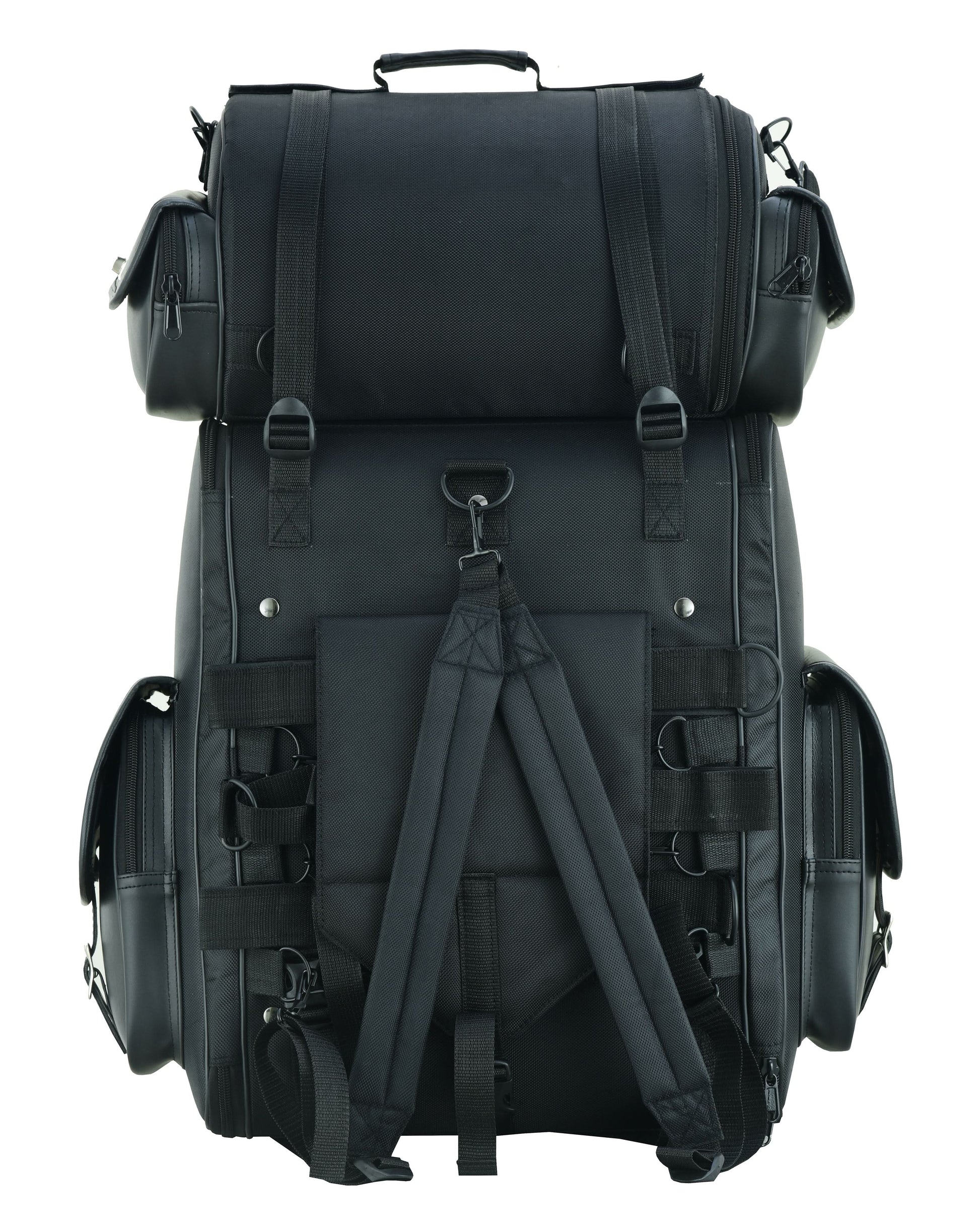 - Top roll bag for extra cargo capacity with shoulder strap and cargo straps that can mount the roll bag or strap down extra gear; jacket, rain gear, sweatshirt, etc.