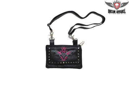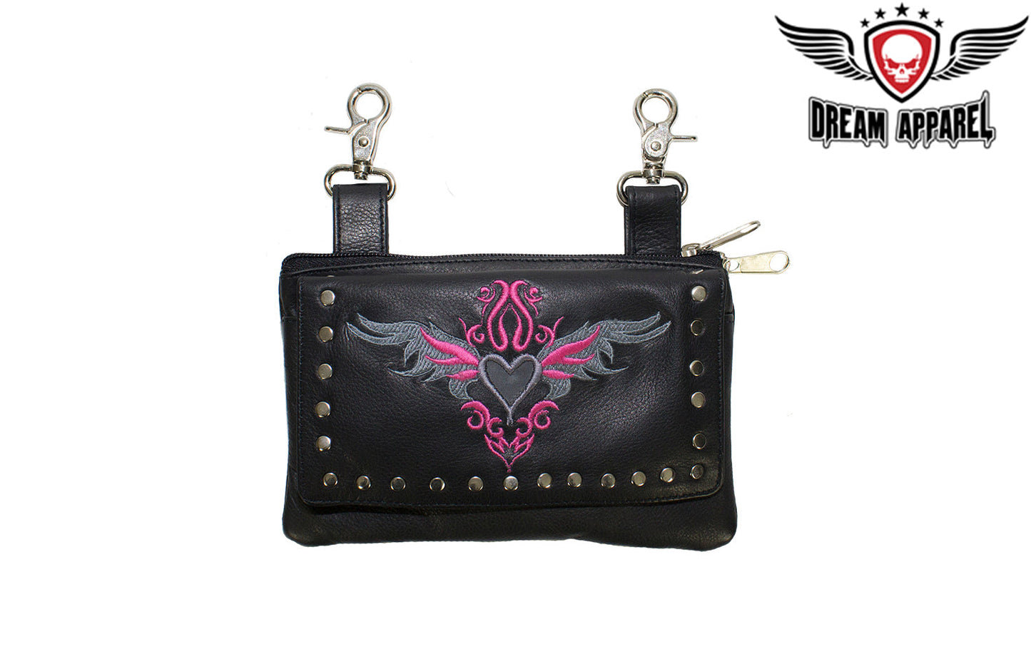 All Naked Cowhide Leather Belt Bag with Gray/Pink Heart and Studs