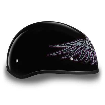 Our D.O.T. Daytona Slim Line Skull Cap 1/2 Shell Helmet In The Bared Wire Heart Graphic, Meets And Exceeds D.O.T. FMVSS 218 Standards And Is The Smallest D.O.T. 1/2 Shell Helmet Ever Made!! With 3 Different Shell Sizes, You're Sure To Get That Proportionate Fit!! Each Graphic Item Is Custom Designed And May Vary In Color Or Composition. Available Without Snaps/Visor Only. Many More Colors And Designs Available. Free Head Wrap And Cloth Draw String Bag Included. Sizes Range From 2XS-2XL.