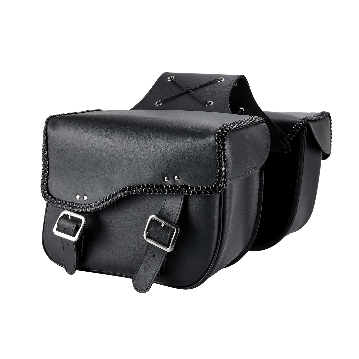 Dream Apparel Motorcycle Saddlebag PVC Classic Black Vintage Style, Weather-Resistant Saddle bag