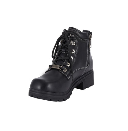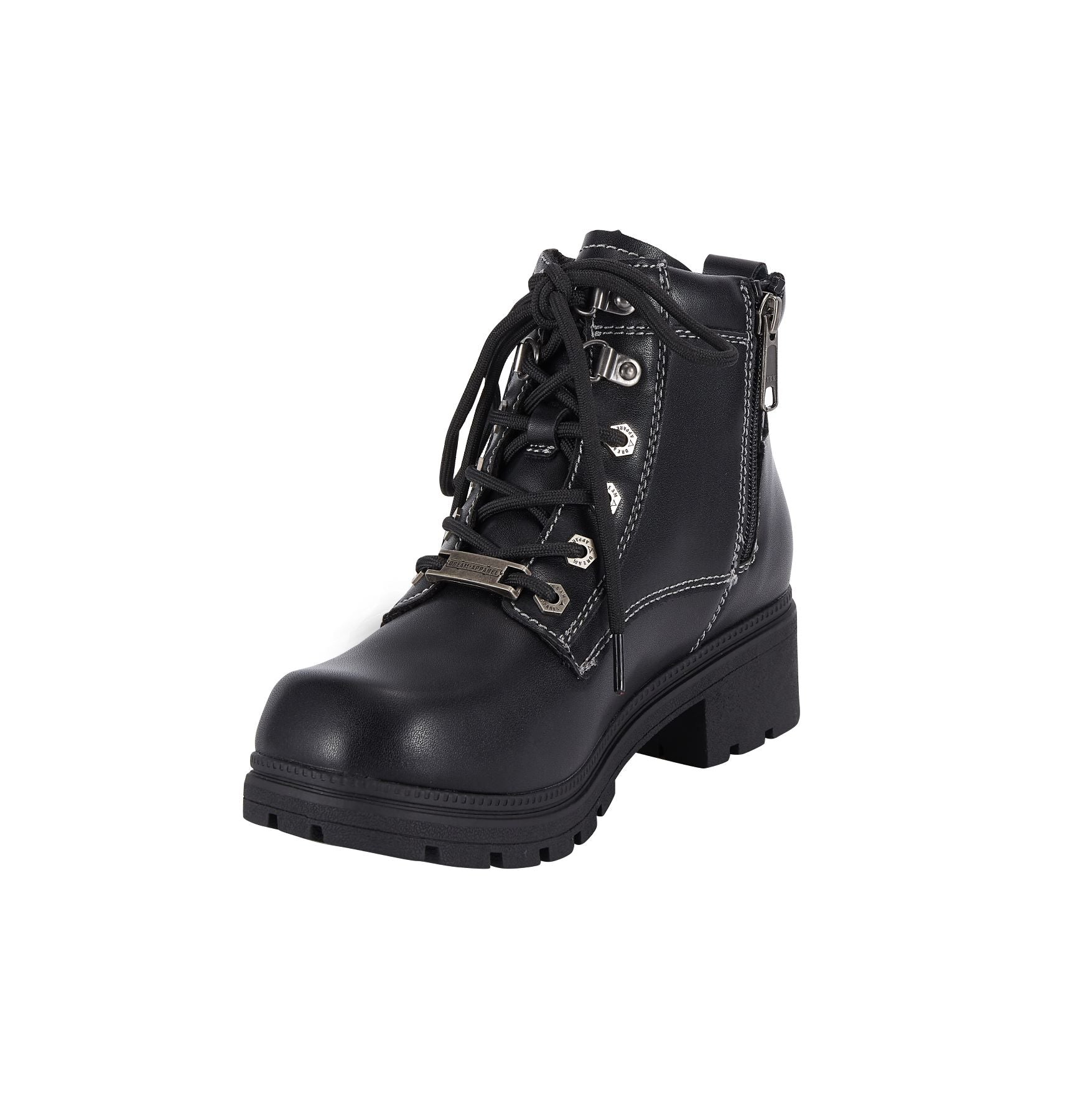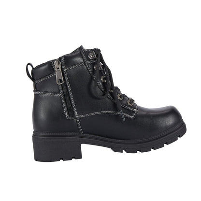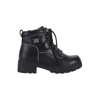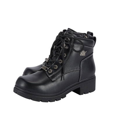 - Dream Apparel Women's Lace Up Motorcycle Riding Boots with YKK Zipper, Black Faux Leather Ankle Biker Boots, Ladies Military Combat Boots with Low Chunky Heel
