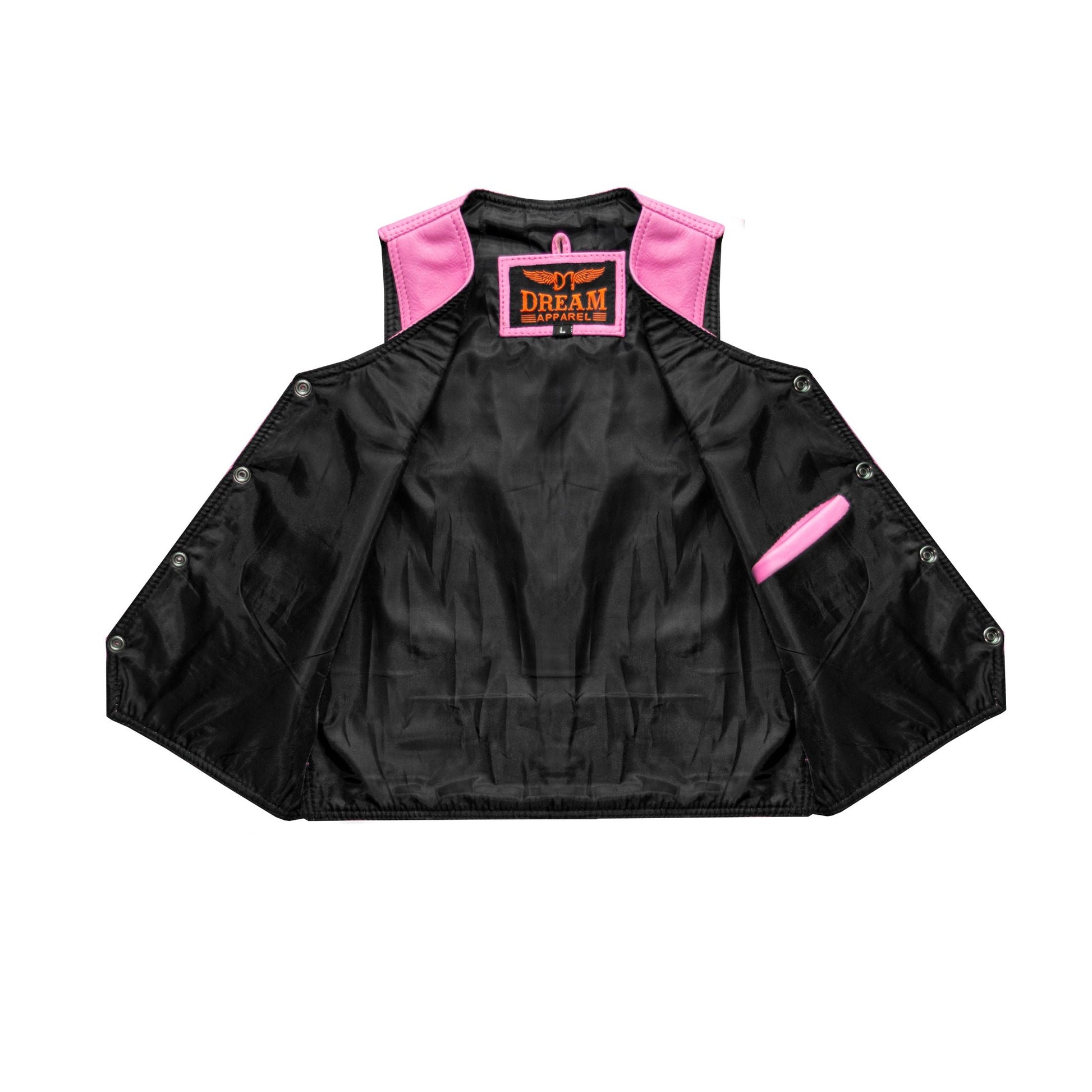 Kids Pink Leather Motorcycle Vest With Button Snap Closure