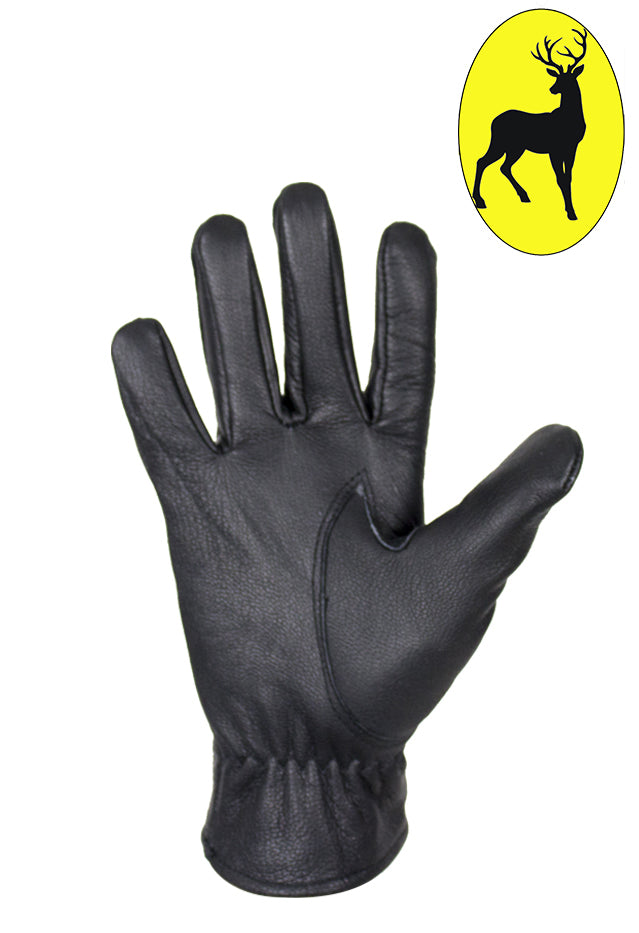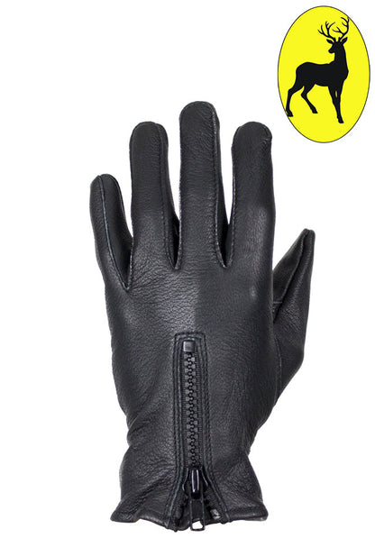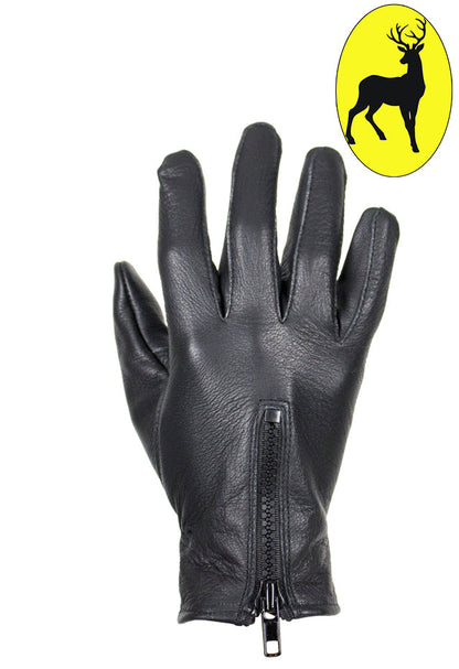 Ladies Deer Skin Leather Gloves W/ Zipper - Black