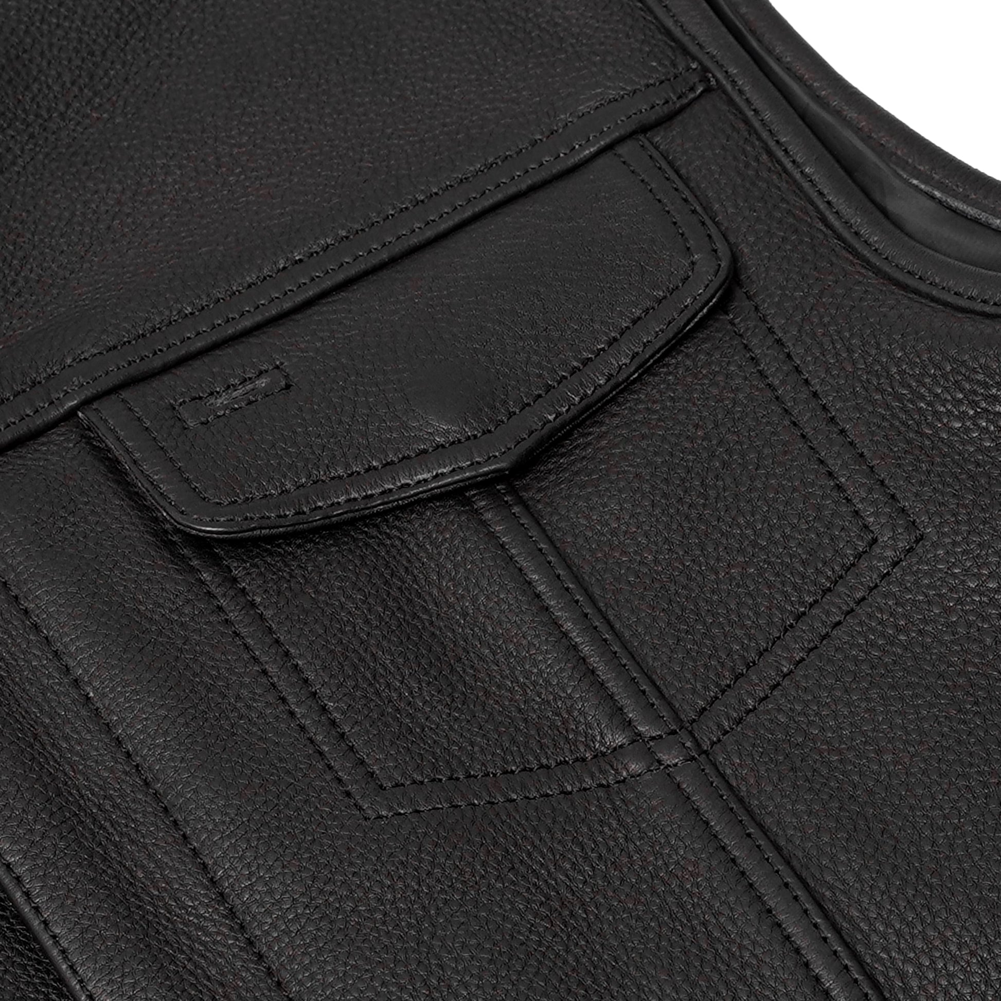 Men's Black Leather Motorcycle Vest with Upgraded Style