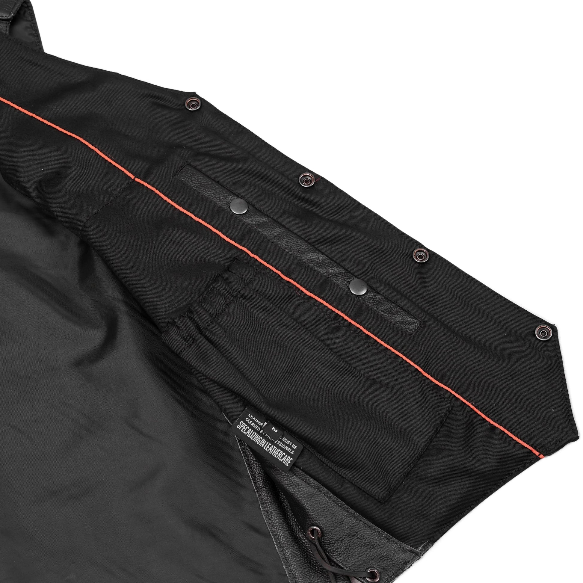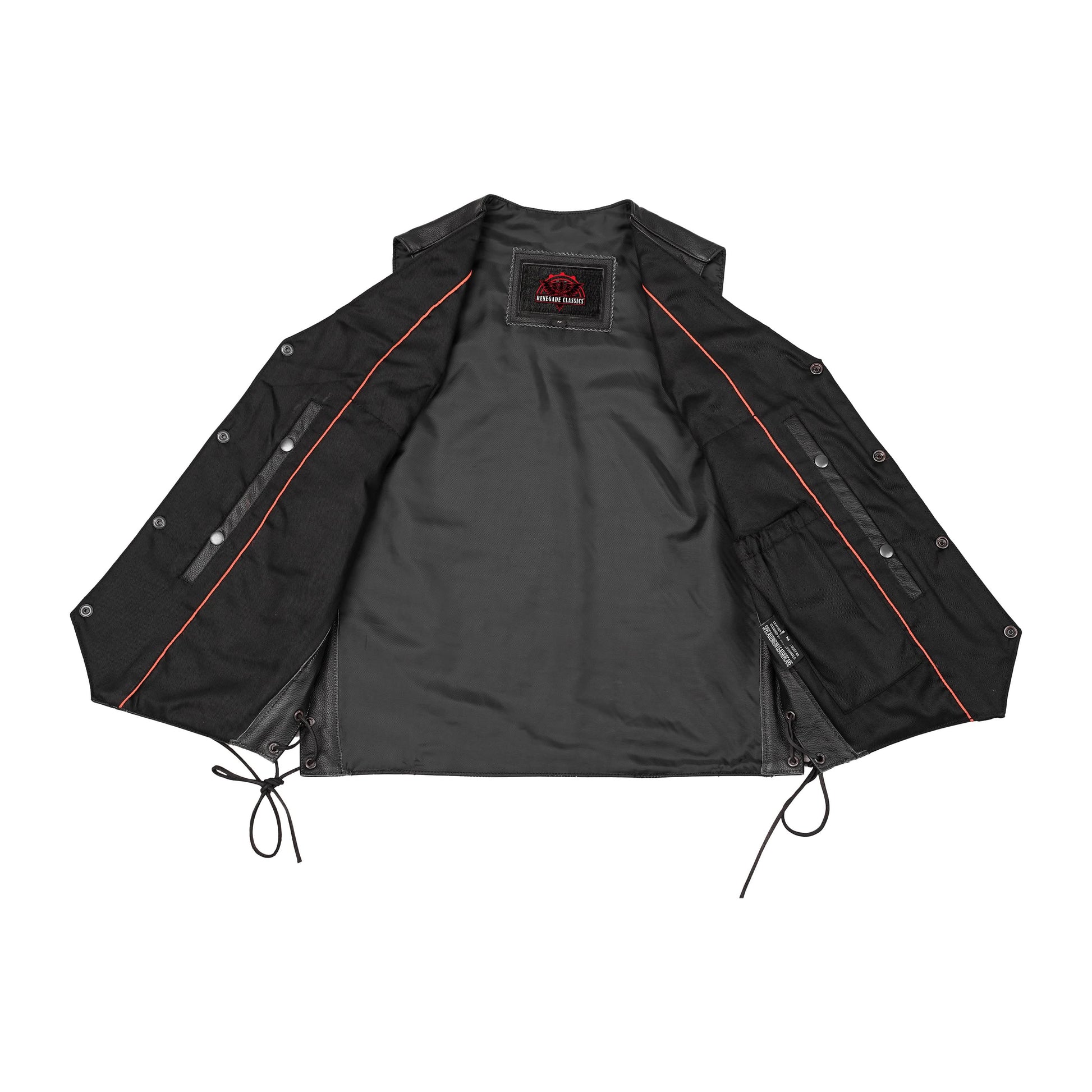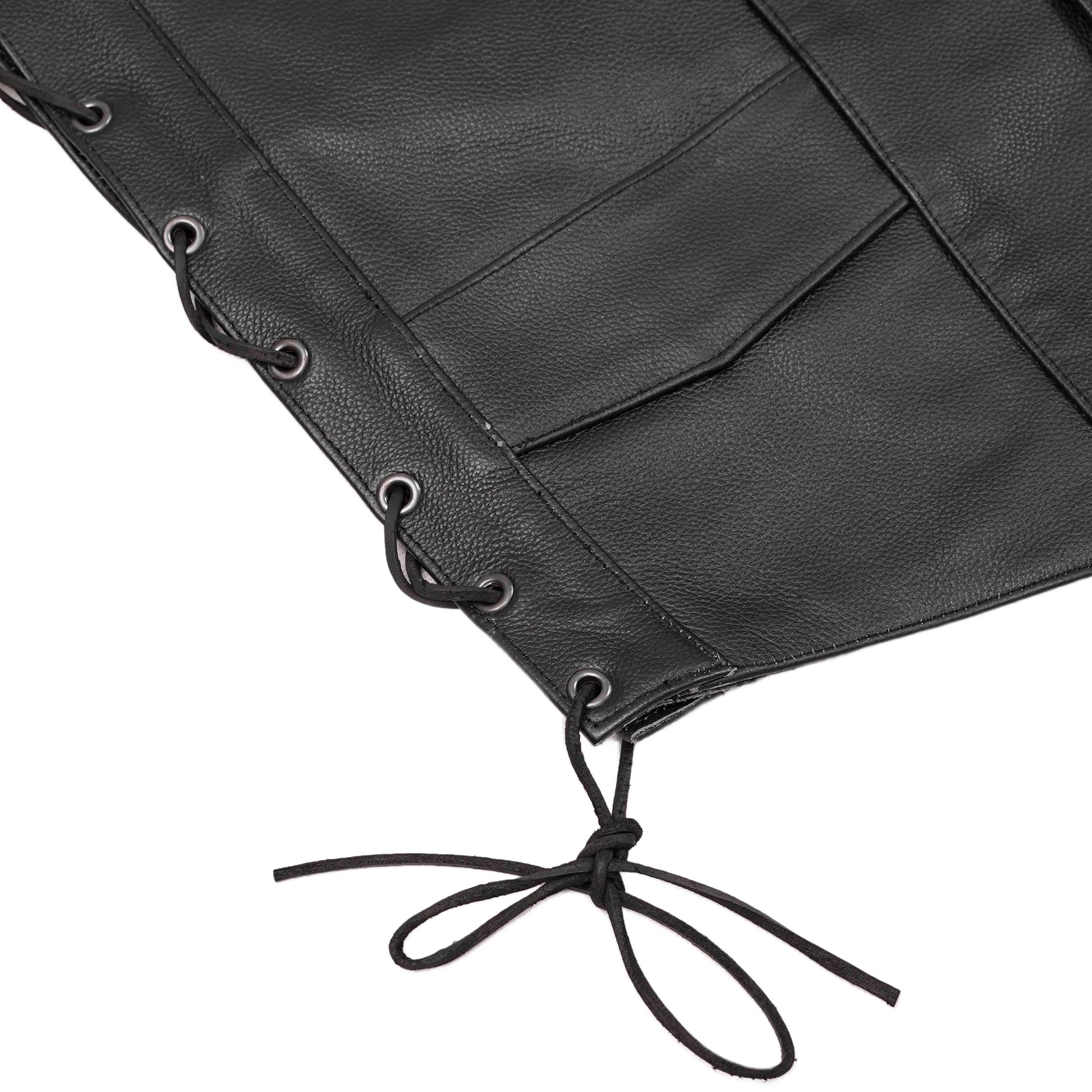 When you're on the road, you need your gear to fit perfectly. Our traditional black vest includes side lacing for easy adjustments. The heavy-duty snaps keep the flaps secure so you can focus on riding safely.