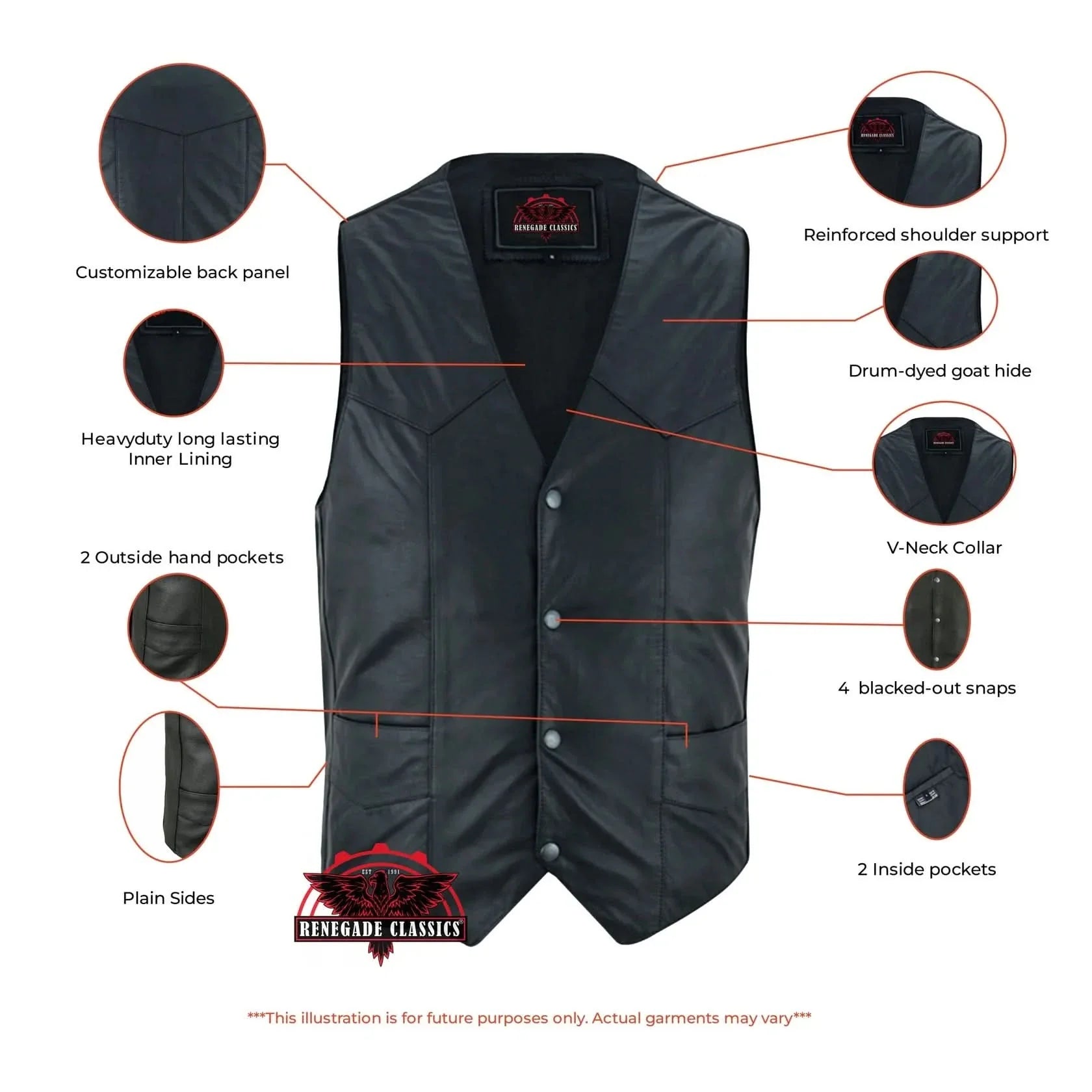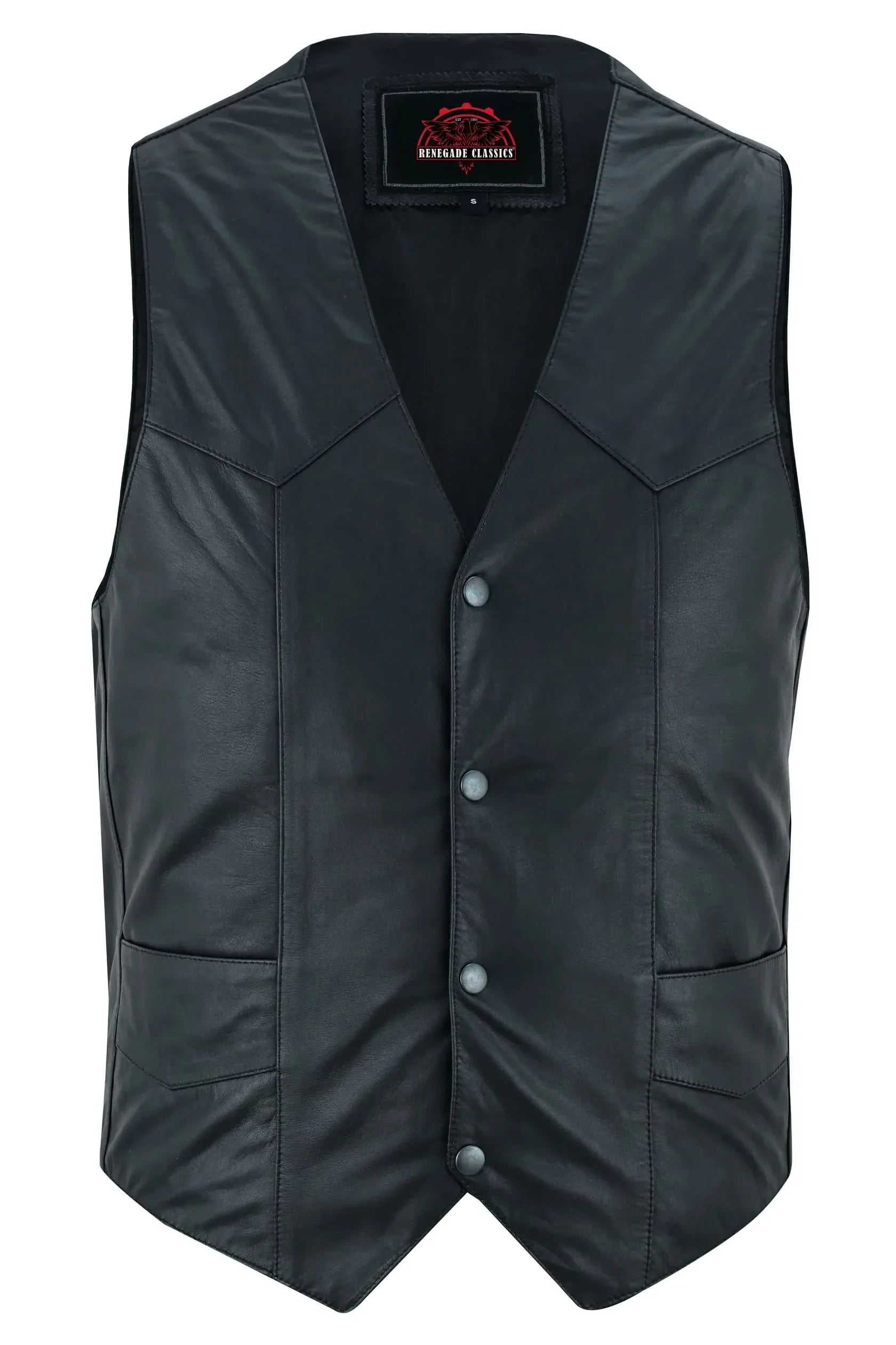 Men's Traditional Light Weight Black Leather Motorcycle Vest