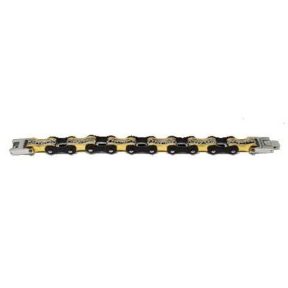 Two Tone Black and Gold Ladies Bike Chain Bracelet with White Crystal Centers