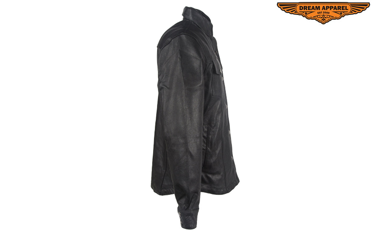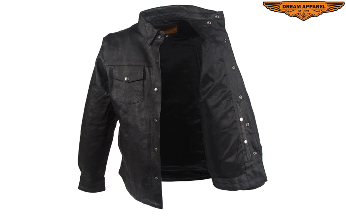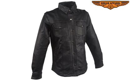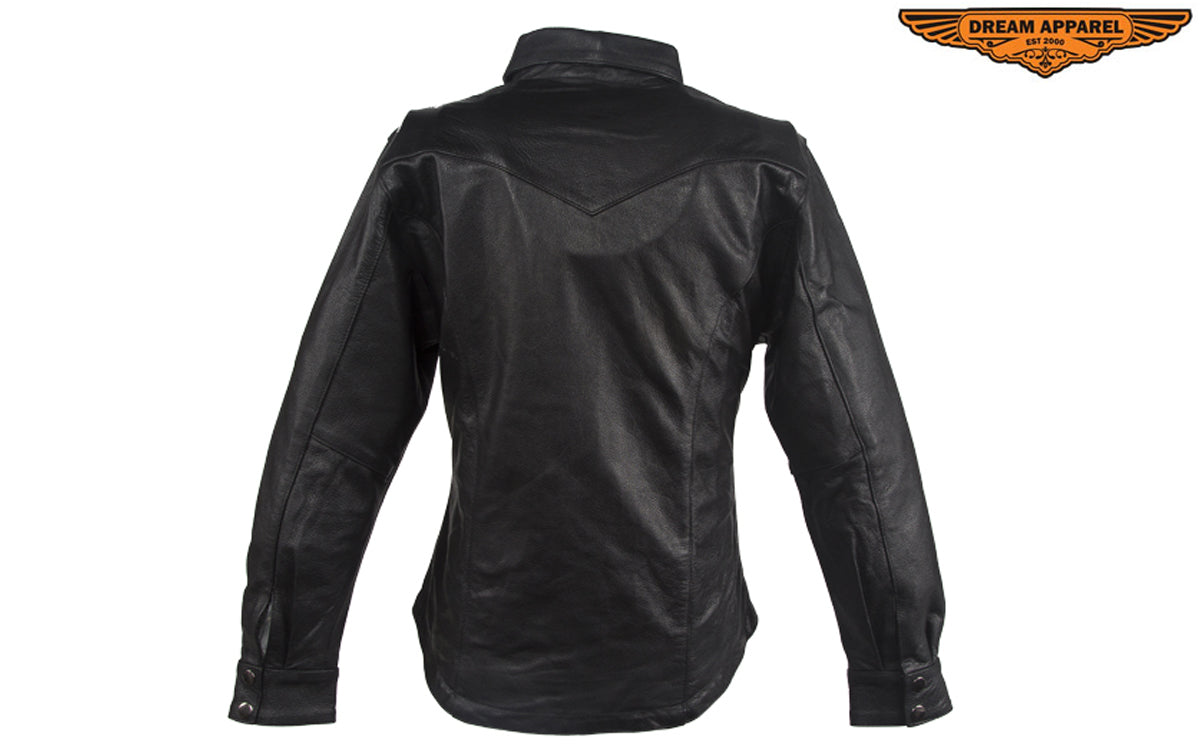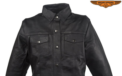 Womens Classic Soft Leather Motorcycle Shirt With Fold Down Collar